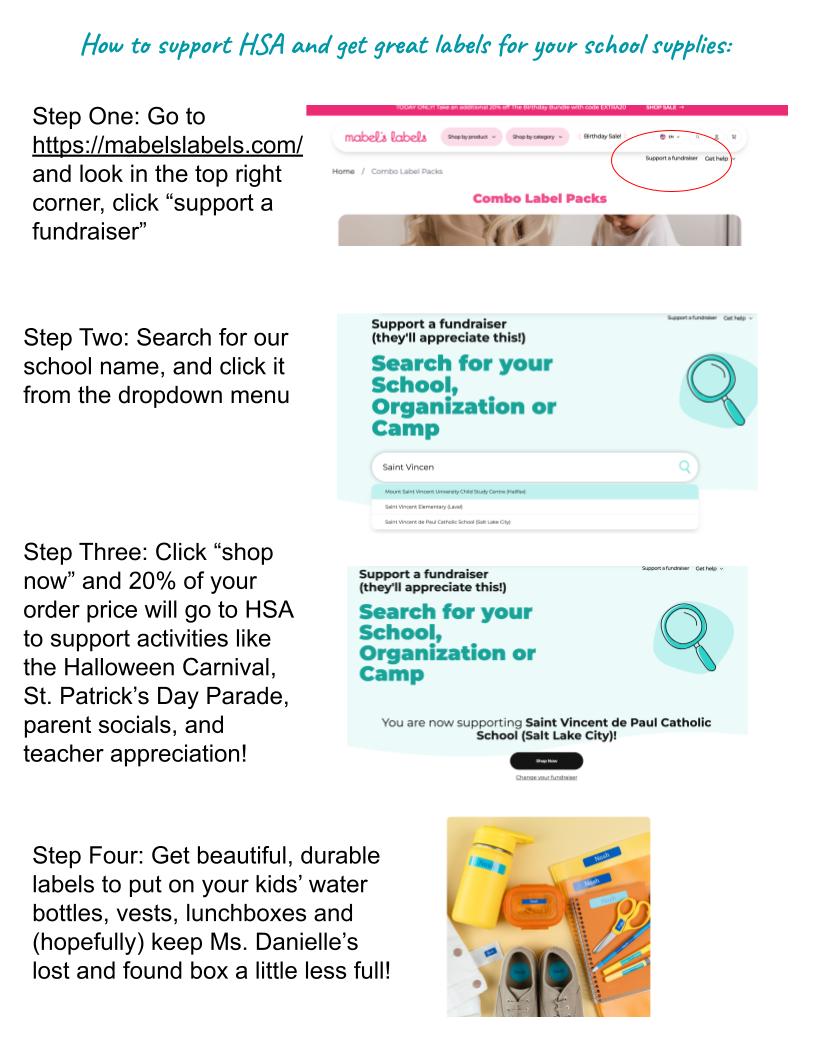Mabels Labels is a fun way to keep all of your children’s belongings labeled and also gives 20% of every purchase to the school. Click here to learn more!