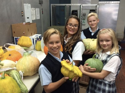 Mary Jo Ahlin, a parent volunteer at the school, added, “The cook at St. Vincent de Paul Soup Kitchen just lit up when he saw all of this gorgeous squash coming his way. They will welcome any and all produce that we harvest!”
