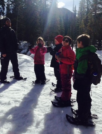 As they explored the Spruces Campground on snowshoes, the students identified and discussed the organisms in the mountains. In addition, they learned about animals’ adaptation in winter months.